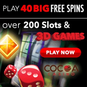 Inscrivez-vous à Cocoa Casino aujourd'hui et vous pourrez réclamer un Bonus Sans Dépôt de 40 Tours Gratuits sans Code Bonus Nécessaire.